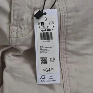 New with Tags NWT Garage Cargo Pant Cleo Beige Wide Leg Cotton Relaxed Fit