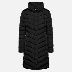 It has been faultlessly finished with a front fastening featuring a covered two-way zipper and zipped jet pockets lined in a cozy material. The water-repellent windproof nylon in a shimmering black palette has been accented with gleaming metal hardware in a light gold finish. Working to keep you snug in cold weather and protect the environment at the same time, Geox takes a sustainable approach to all its products and this one is no exception – it has been padded with a cozy fill in synthetic recycled Ecologic Warm down.