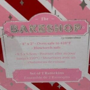 New set of 2 The Bakeshop pink and brown gingerbread house ramekins.