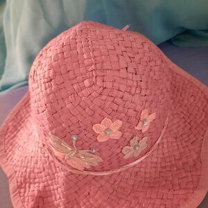 NWT Girls Butterfly Floral Embellished Purple Straw Toddler Hat