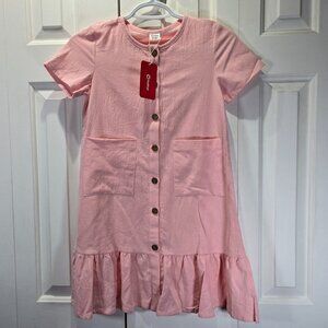 NWT Girl’s Pink Button-Up Dress with Pockets – Size 8-9