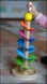 Standing 15 inches tall, this beautifully crafted wooden tower features vibrant, rainbow-hued leaf-shaped tracks that guide glass marbles on a spiraling journey.