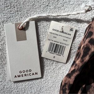 NWT Good America Wrap-effect Sepia Leopard Print Satin Bodysuit 0