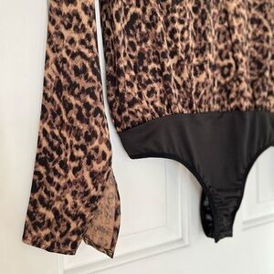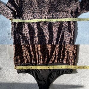 NEW NWT Good American Sepia Leopard Print Big Cat MobWife Wrap-effect Satin Bodysuit Snap Gusset Thong Bottom 0 Animal Print