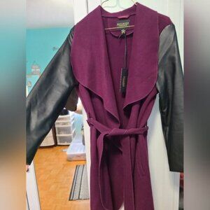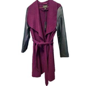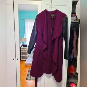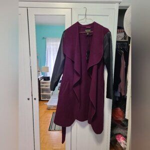 NWT Gorgeous Cozy Fall Faux Suede Purple Plum Wrap Coat Faux Leather Sleeves Business Casual