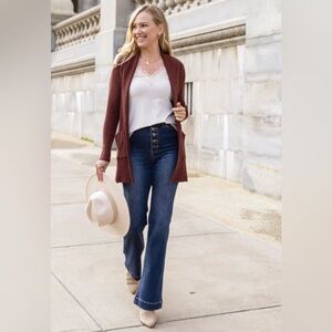 Flare jeans lovers, these are for you! Introducing the Button Fly Flare Denim! We’ve worked hard to bring you more trend-forward denim jeans that are still completely wearable for everyday, and these button fly beauties are no exception. These jeans combine a unique notched waistline with a hi rise and flare leg that’s ultra flattering and just fun to wear! Go on, kick up your heels and show yourself off - you’re worth it!