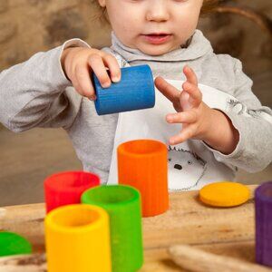 NWT Grapat Wooden Toys 6 Coloured Cups With Lids