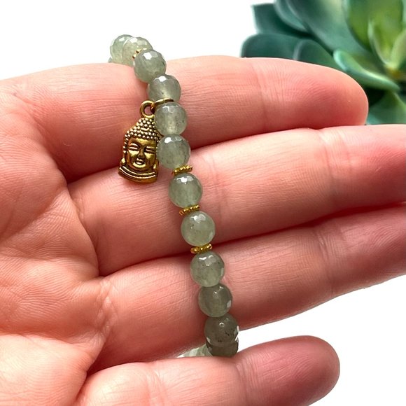 New Green Aventurine faceted 6mm with a cute gold buddha charm bracelet!
