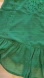 Chic green sleeveless top with a ruffle hem. Features a stylish lace detail on the front.