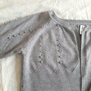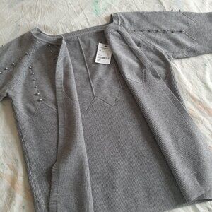 NWT Grey Cardigan Pearl Mid Sleeves Office Wear