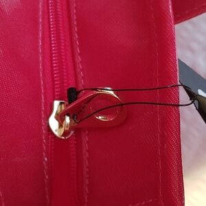 - shiny red tote with Gold Guess Original Est. 1981 Denim Los Angeles on front