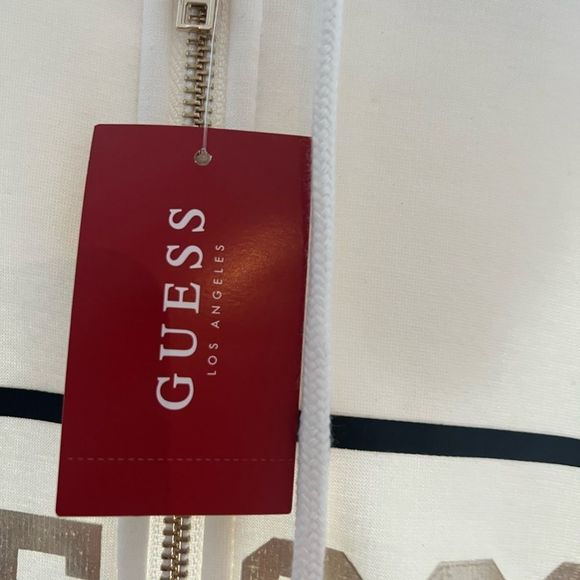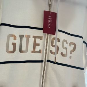 NWT Guess Womwn White and Gold Zip up hoodie, Size Extra Small, fall