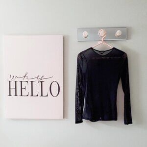 NWT Guess black and crystal bejewelled accented mesh long sleeve top, S