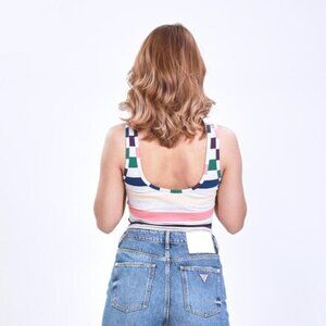 NWT Guess heather grey and multicolour stripe logo tank bodysuit
