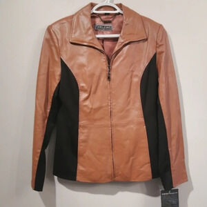 NWT Guillaume Leather Jacket Zip Front in Brown with Black Stretch Sides Small