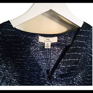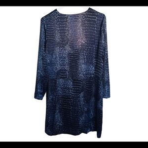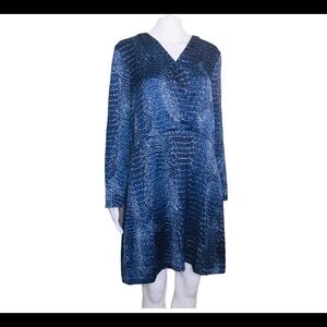 NWT HALSTON (Anthropologie) Tonal Snake Print V Neck Crossover Long Sleeve Dress Navy Blue Small