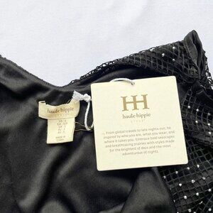 NWT HAUTE HIPPIE BLACK RHINESTONE MESH EMBELLISHED DRESS