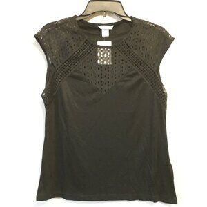NWT H&M Black Lace Topped Crew Neck Cap SleeveTop