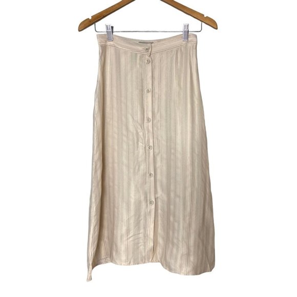 NWT H&M Champagne Satin Pinstripe Button Down Midi Skirt Size 2