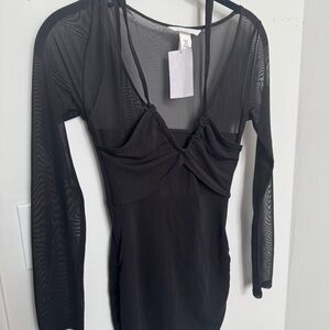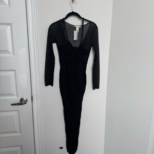 NWT H&M Elegant Black Mesh Sleeve Dress goth Beachy glam vacation XS
