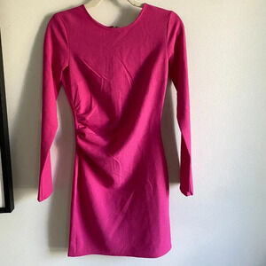 NWT H&M Hot Pink Gathered Scoop Neck Bodycon Mini Dress with Ruching Size XS