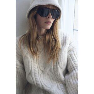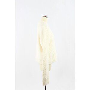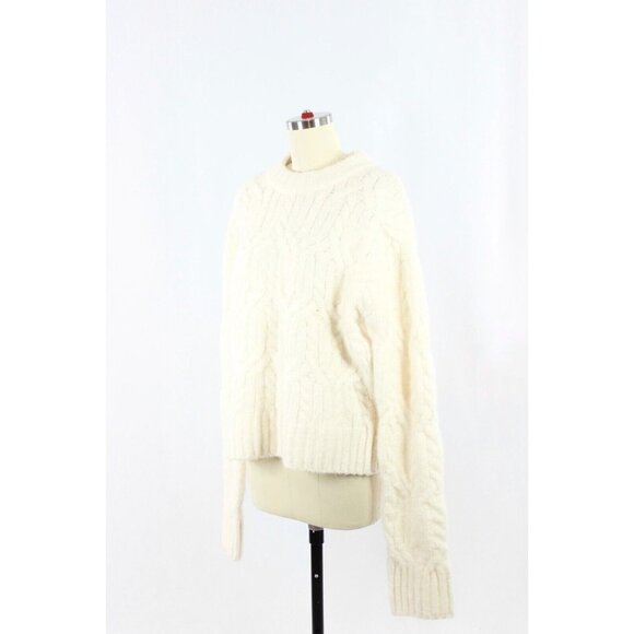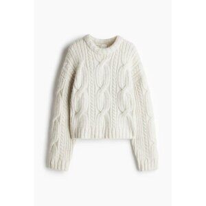 NWT H&M Ivory White Poly Wool Blend Chunky Cable Knit Crew Neck Sweater, Size M