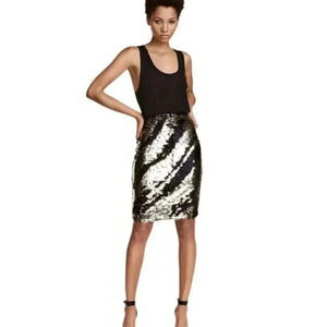 NWT H&M Metallic Gold Black Sequin Skirt Color Changing Size 4