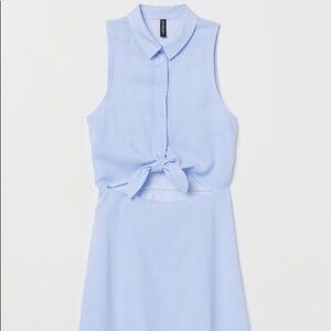 Sleeveless, knee-length dress in woven viscose fabric. Collar, buttons at front and tie detail at waist. Seam at waist with elastication at back, open section at front, and A-line skirt. Unlined. Exposed stomach. New with tags. Next week day shipping. Bundle up to save!