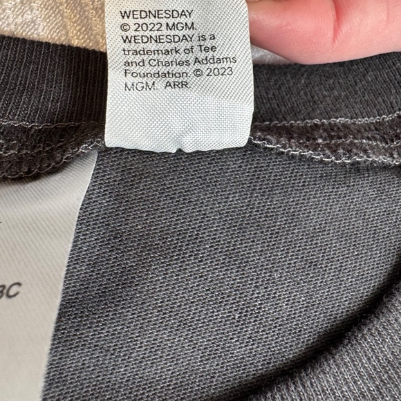 New with tags - Official trademarked Wednesday Addams Tee from H&M's Divided concept line. An oversized black graphic short-sleeve tee with a blue-purple and white print of Wednesday in the dance scene and the word "Wednesday". Perfect for binging the series or would make a great night /sleep shirt.