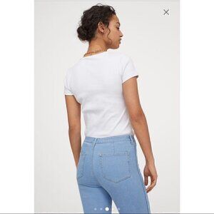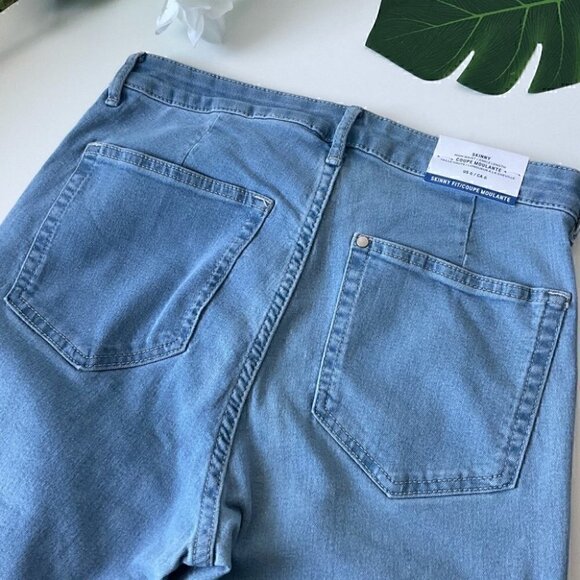 Ankle-length jeans in washed, stretch denim. High waist, zip fly with button, back pockets, and skinny legs.