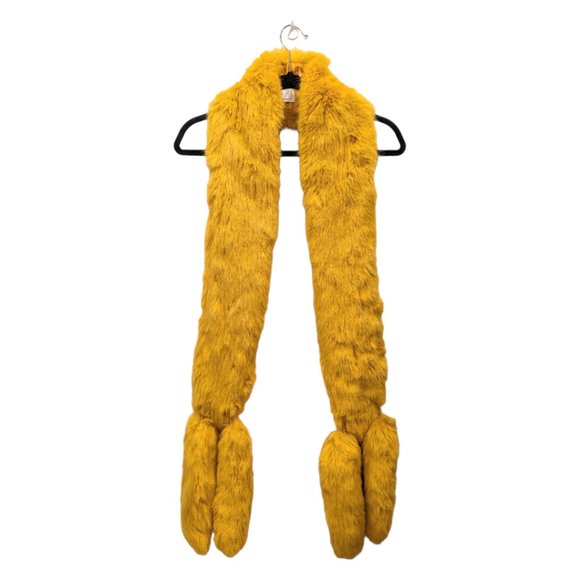 NWT H&M x Moschino collaboration golden yellow, super soft, faux fur scarf. Lining features "H&MOSCHINO" details. The tails of the scarf are attached with hooks and could be removed.