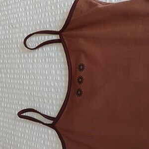 - two toned in milk chocolate with the spaghetti straps and neckline in a rich dark brown