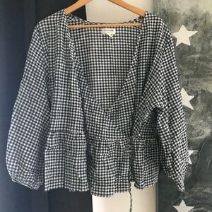 SLIGHT SEERSUCKER Gorgeous crossover shirt in Navy Gigham, never worn. pit to pit 23" L 24"