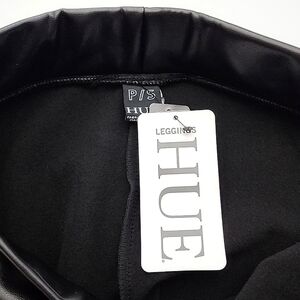 New with tags, HUE women's black faux leather pull on stretchy skinny pants with an elasticized waist and a soft interior lining, size XS.