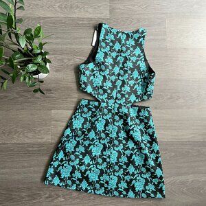 NWT HUTCH Teal & Black Jacquard Cut Out Mini Sleeveless Dress