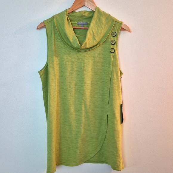 NWT Habitat 100% Cotton Cowl Neck Tunic Sleeveless Top Chartreuse Green Large