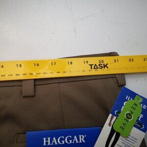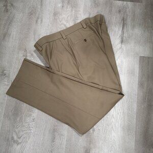 NWT Haggar Cool Right Men's Size 42/32 Flat Front Straight Fit Tan Pants