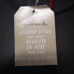 2014 Hallmark 8 1/2" festive plate with red metal stand.