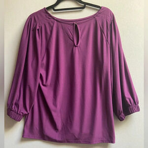 NWT Halogen 3/4 sleeve scoop neck purple blouse Sz L