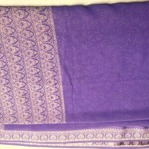 Elevate your wardrobe with this new handcrafted lilac scarf by Sana, featuring delicate traditional-style golden patterns along the edges. Made from soft, lightweight polyester, it drapes gracefully and brings a sense of timeless beauty and refinement to any outfit.