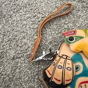 NWT Handcrafted Multicolor Leather Wallet Wristlet Native Totem Coin Purse Bag