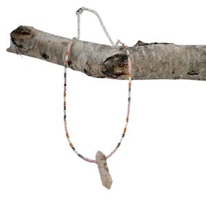 Transform your look with this boho-chic necklace featuring a stunning quartz crystal pendant.