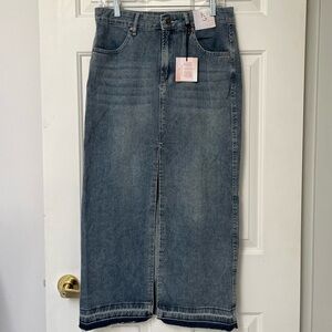NWT Happily Grey Denim Midi Skirt 30” Waist