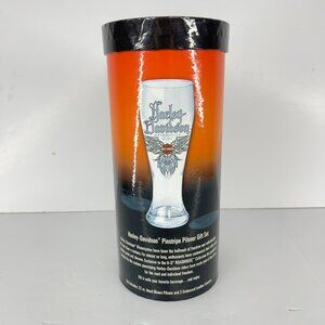 NWT Harley-Davidson Pinstripe Gift Set Pilsner Glass & Embossed Leather Coasters