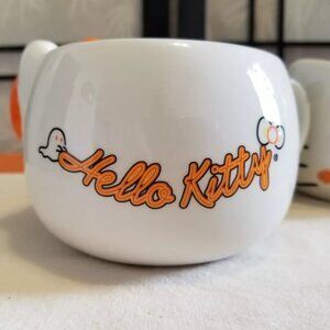 HTF 3D Sculpted Hello Kitty Coffee Mug w/ Orange Dot Bow Halloween