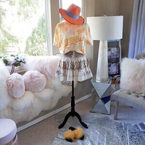 NWT Hemant & Nandita beige print pleated mini skirt