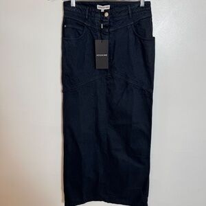NWT Herskind Nikita Skirt Denim Long Black-Blue Straight Back Slit Size XS (2-4)