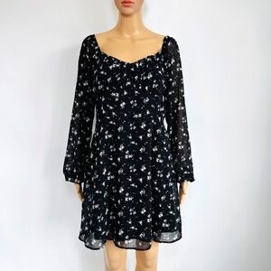 NWT Hollister Sweetheart Neck Romantic Longsleeve Mini Dress Black Floral Size L