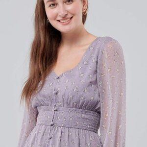 NWT Hollister Textured Tiered Floral Mini Dress with Long Sleeves