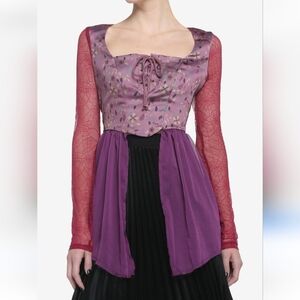 NWT Hot Topic Disney Hocus Pocus Sarah Peplum Top Spider Web Sleeves Size XL